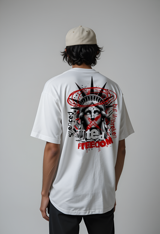 Muted Freedom Oversized White T-Shirt – Minimalist Streetwear for Bold Souls